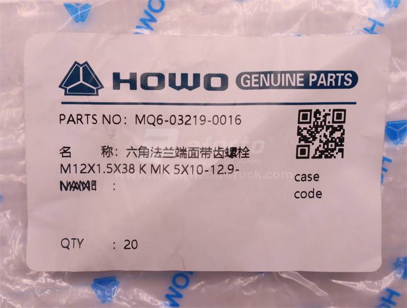Болт с шляпкой 12*38*1.5 фланцевый задний мост SINOTRUK MCP16  (оригинал)
